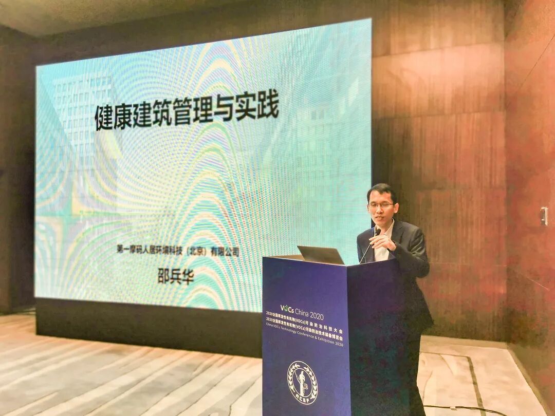第一摩码人居环境科技(北京)有限公司副总经理邵兵华做《健康建筑管理与实践》主题演讲。